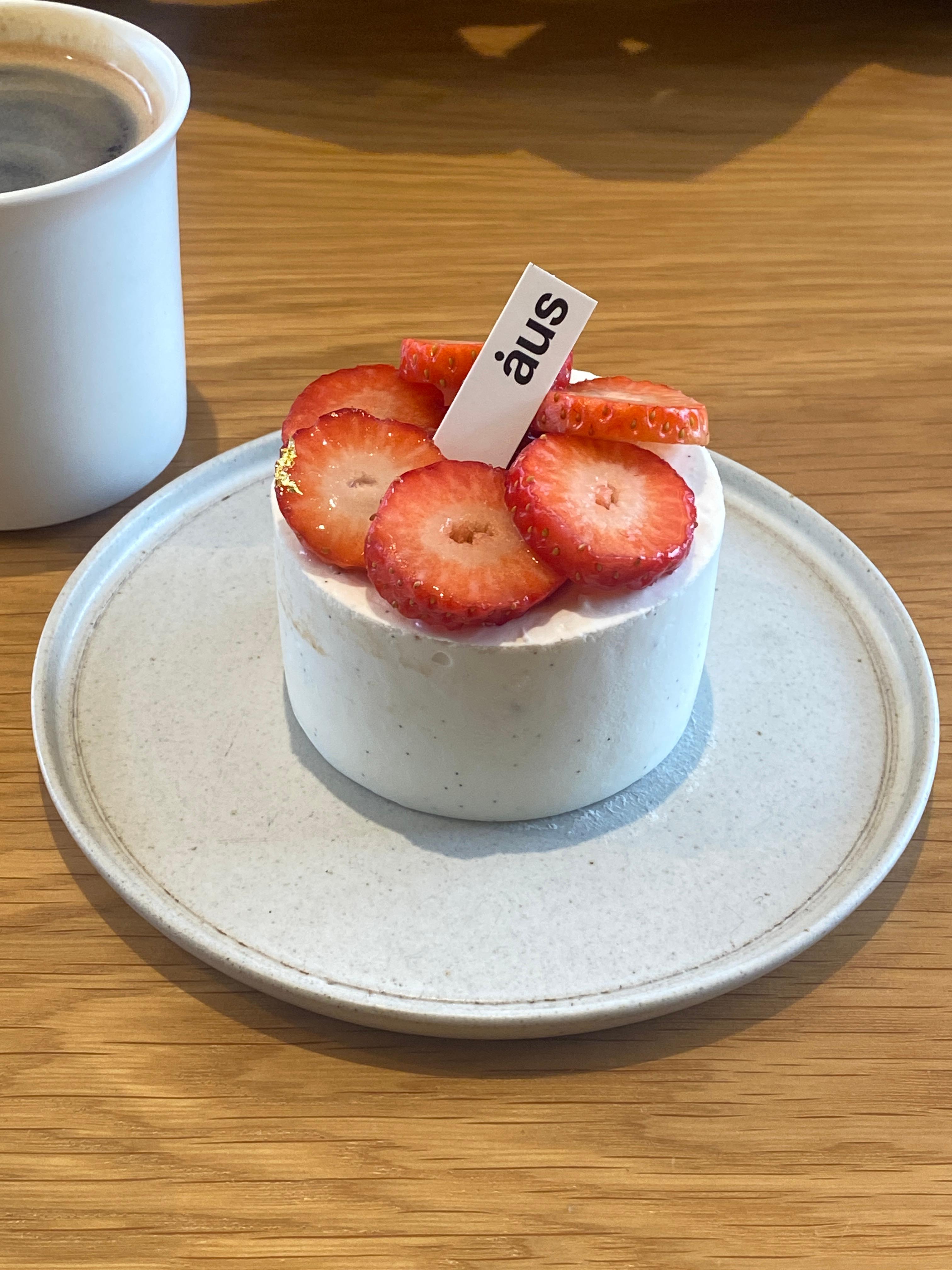쎄종은 바닐라 크림으로 덮인 케이크위에 달콤하게 코팅된 딸기가 올라가 있는데, 케이크 속 딸기잼 같은 녀석이 킥이었다. 그리고 무엇보다 바닐라 씨들이 잔잔하게 보이는 크림은 사소한 것 하나 놓치지 않고 제대로 만드는 아우스의 고집이 느껴졌다.