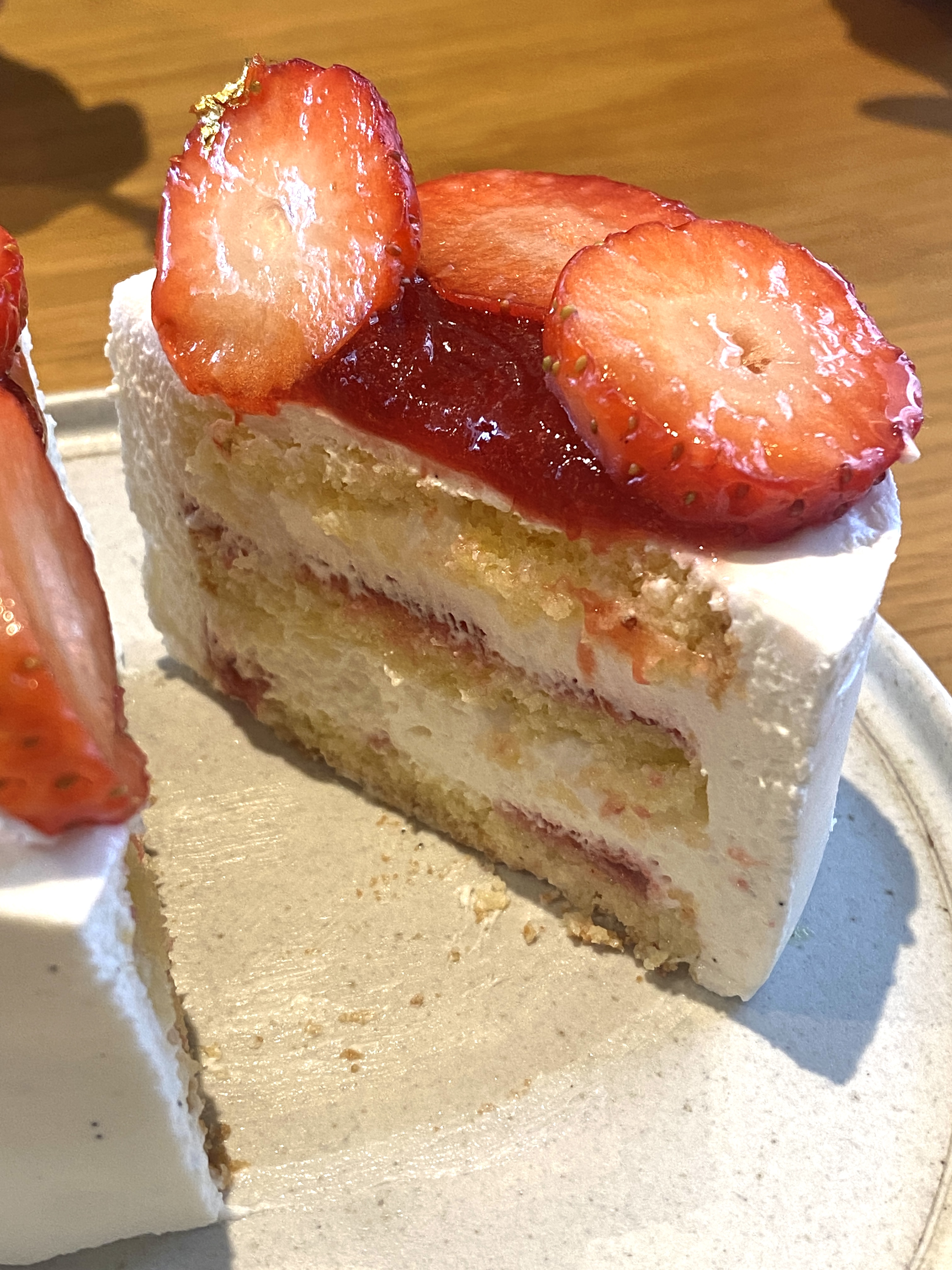 쎄종은 바닐라 크림으로 덮인 케이크위에 달콤하게 코팅된 딸기가 올라가 있는데, 케이크 속 딸기잼 같은 녀석이 킥이었다. 그리고 무엇보다 바닐라 씨들이 잔잔하게 보이는 크림은 사소한 것 하나 놓치지 않고 제대로 만드는 아우스의 고집이 느껴졌다.