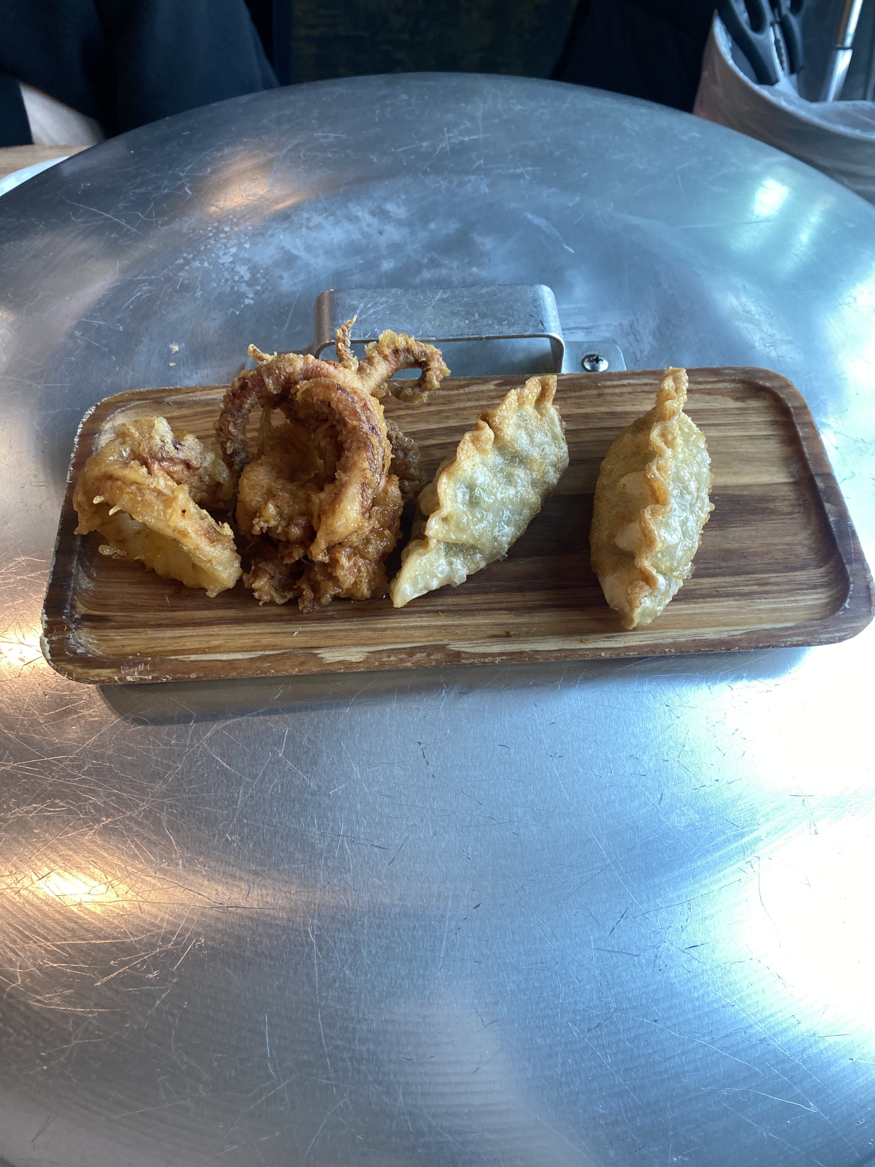 조개전골이 익기를 기다리는동안 간단한 주전부리로 제공되는 오징어튀김과 군만두는 그리 길지 않은 시간을 기다리는 동안 맛보기에 딱 적당한데, 단품 메뉴로도 판매하는 거라서 그런지 튀김의 퀄리티가 상당하다.
