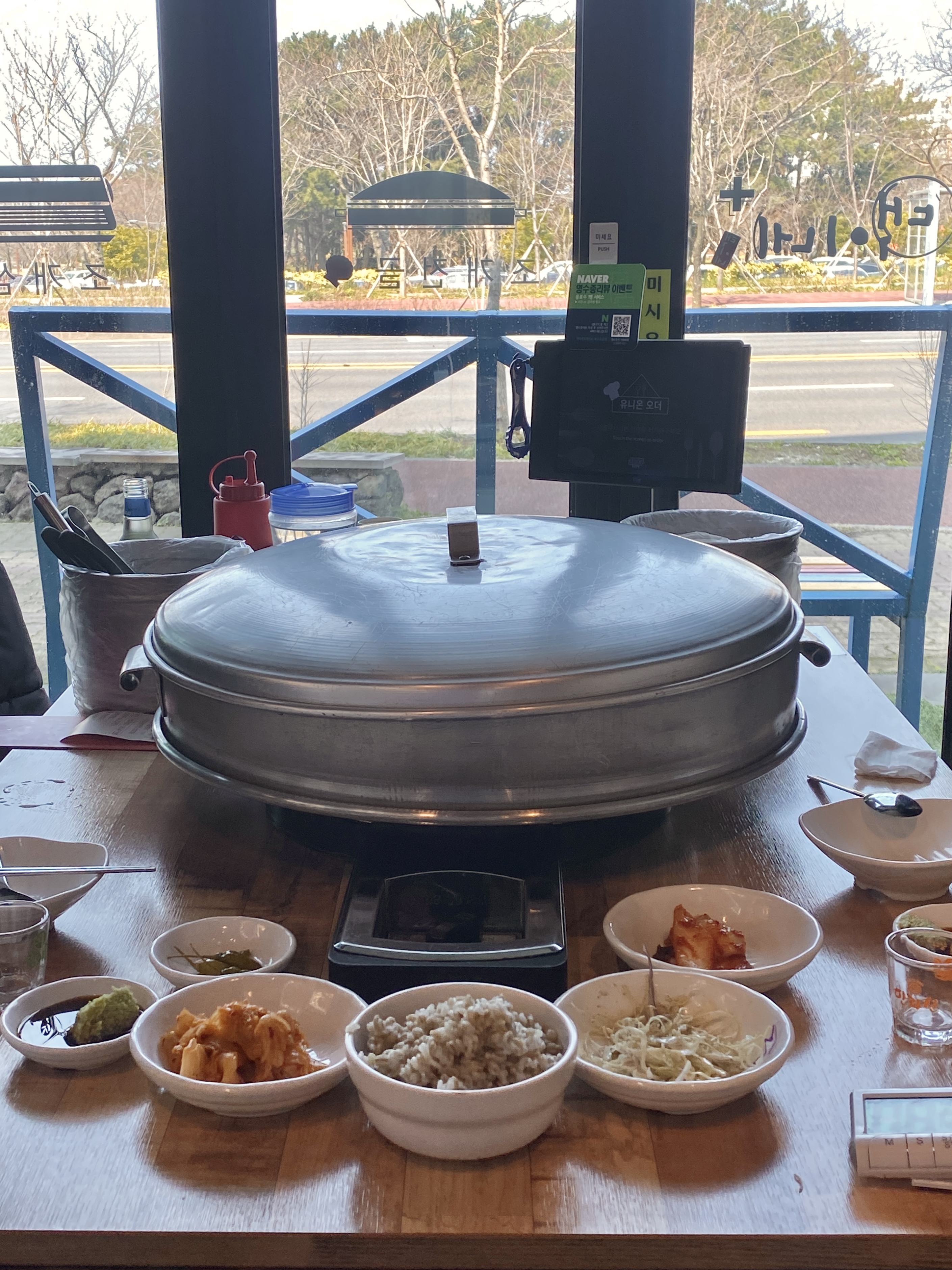 조개전골은 주문한지 얼마 지나지 않아 금방 준비가 된다. 거대한 찜솥이 눈길을 잡는다.