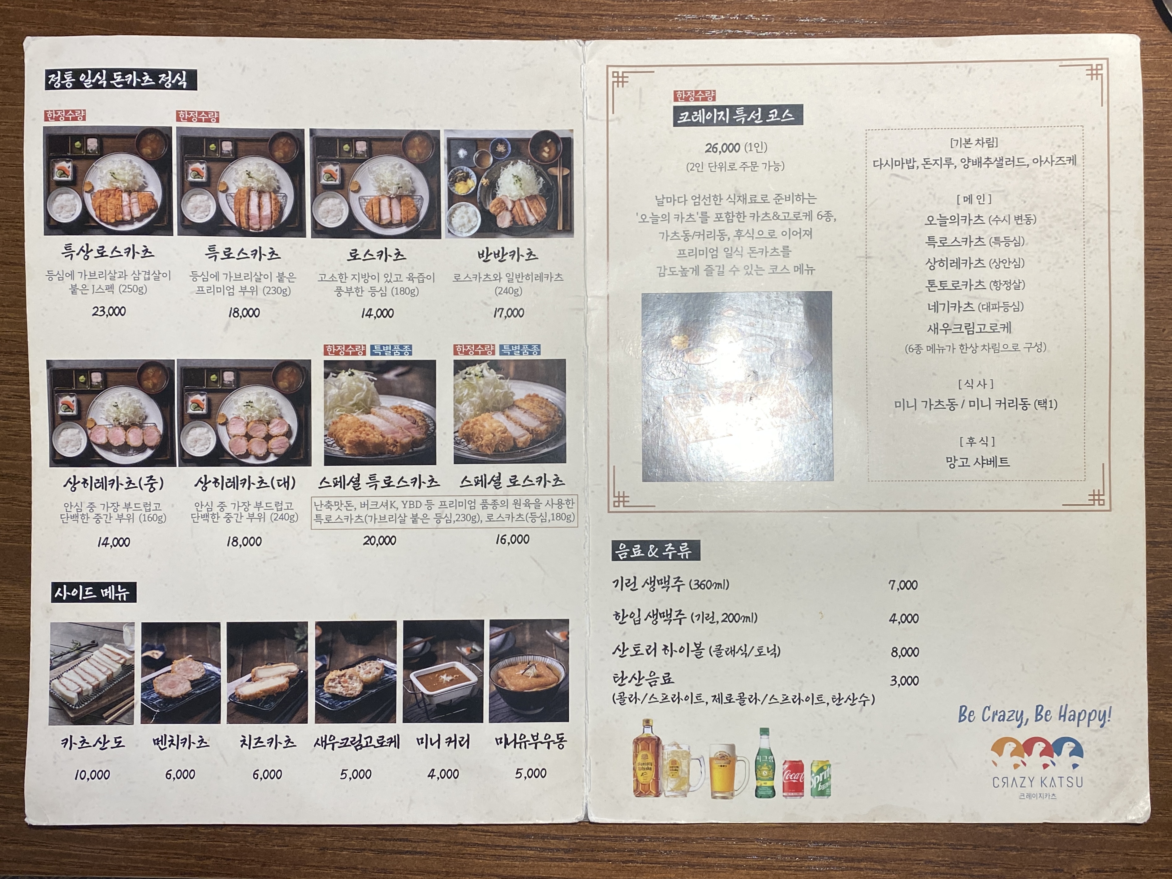 돈까스에 대한 고민과 열정을 느낄 수 있었던 크레이지카츠. 개인적으로는 특로스카츠와 항정살카츠 순으로 추천하고 싶다.
