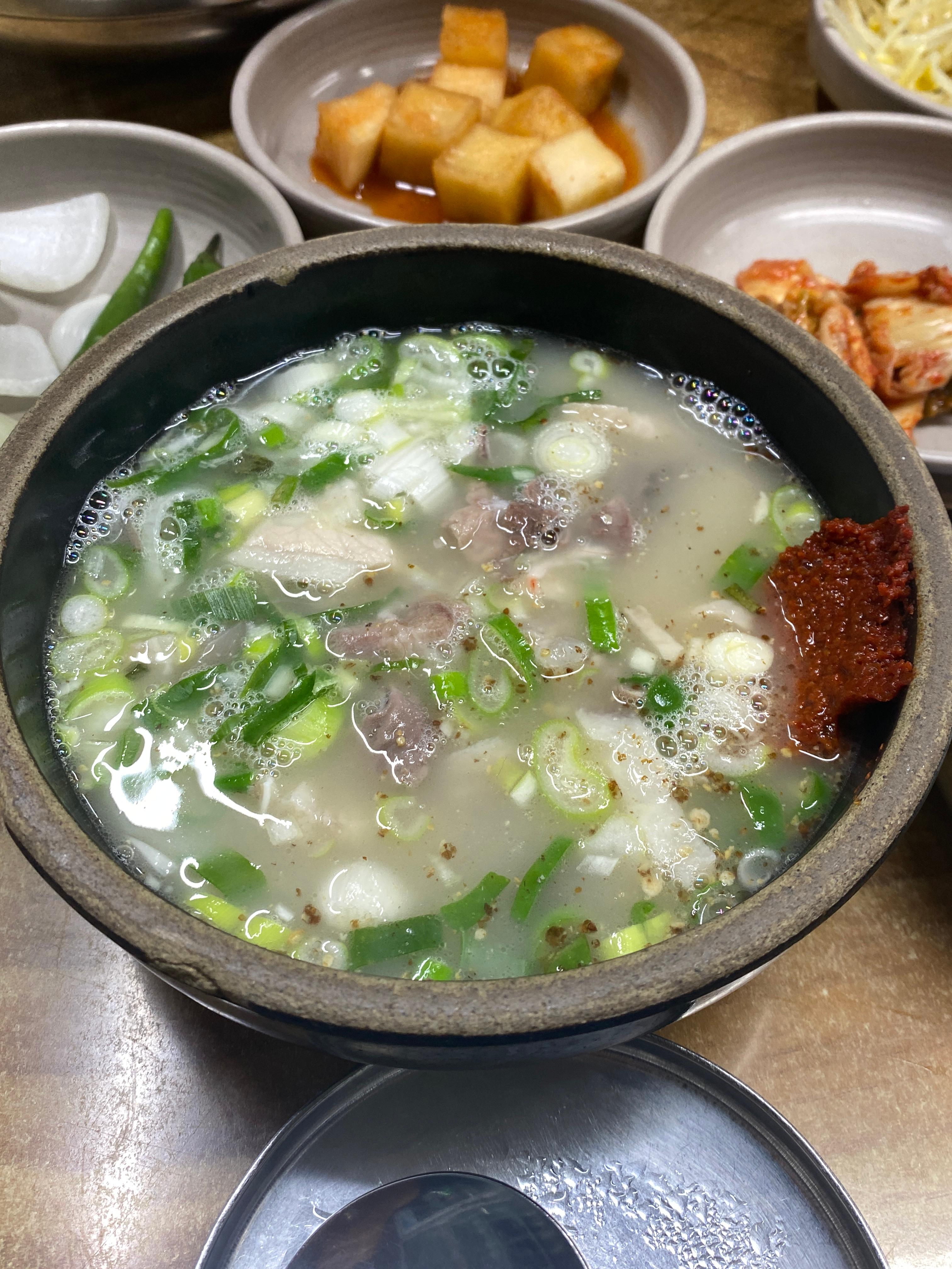 국밥과 따로 국밥에 대한 개념이 없던 시절 뚝배기에 뜨끈한 국물과 함께 밥이 말아져서 제공된다는 점이 상당히 놀라웠는데 따지고 보면 따로국밥이 천 원가량 더 비싼 대신 밥의 양이 미세하게 많다는 것을 깨닫게 된 계기이기도 하다.